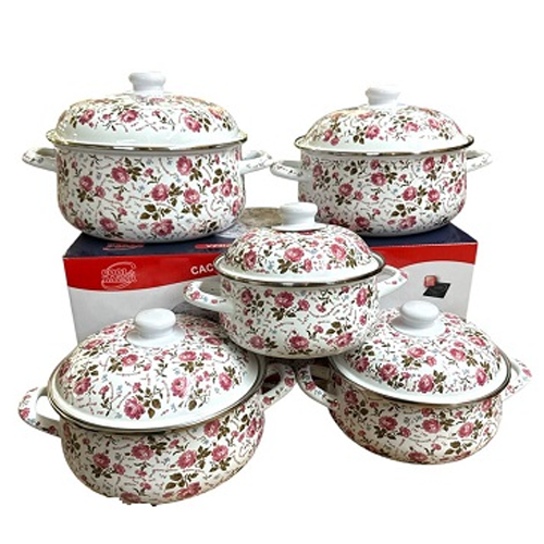 CACEROLA ENLOZADA SET X5 18/20/22/24/26CM FLORCACEROLA ENLOZADA SET X5 18/20/22/24/26CM FLOR